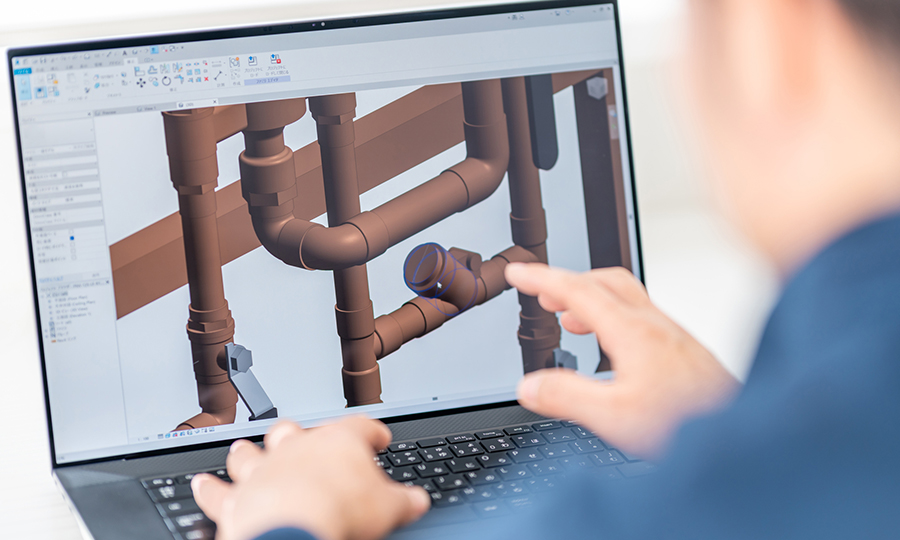 設計では、建物に合わせてどんな配管を行っていくのかを決め、さらにはその配管が法律や安全のルールに合致しているかを慎重に検討します。